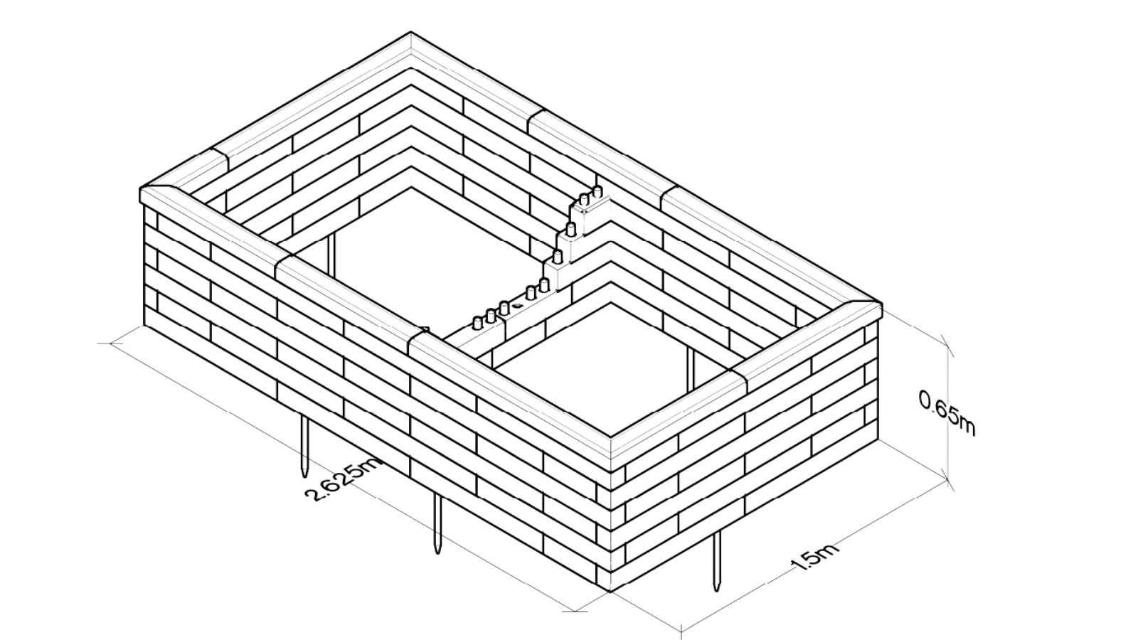 Omdat Ian al een verhoogde bak van WoodBlocX had, was het belangrijk om ervoor te zorgen dat dezelfde maat werd gekozen om uniformiteit in het tuinontwerp te garanderen. Met behulp van onze online rekentool voor verhoogde bakken werd gekozen voor lengte 1,5 m x breedte 2,625 m x hoogte 0,65 m. Ian was van plan om de extra twee bakken toe te voegen als aanvulling op de bestaande verhoogde bak om meer ruimte te hebben voor zijn moestuinplannen.
