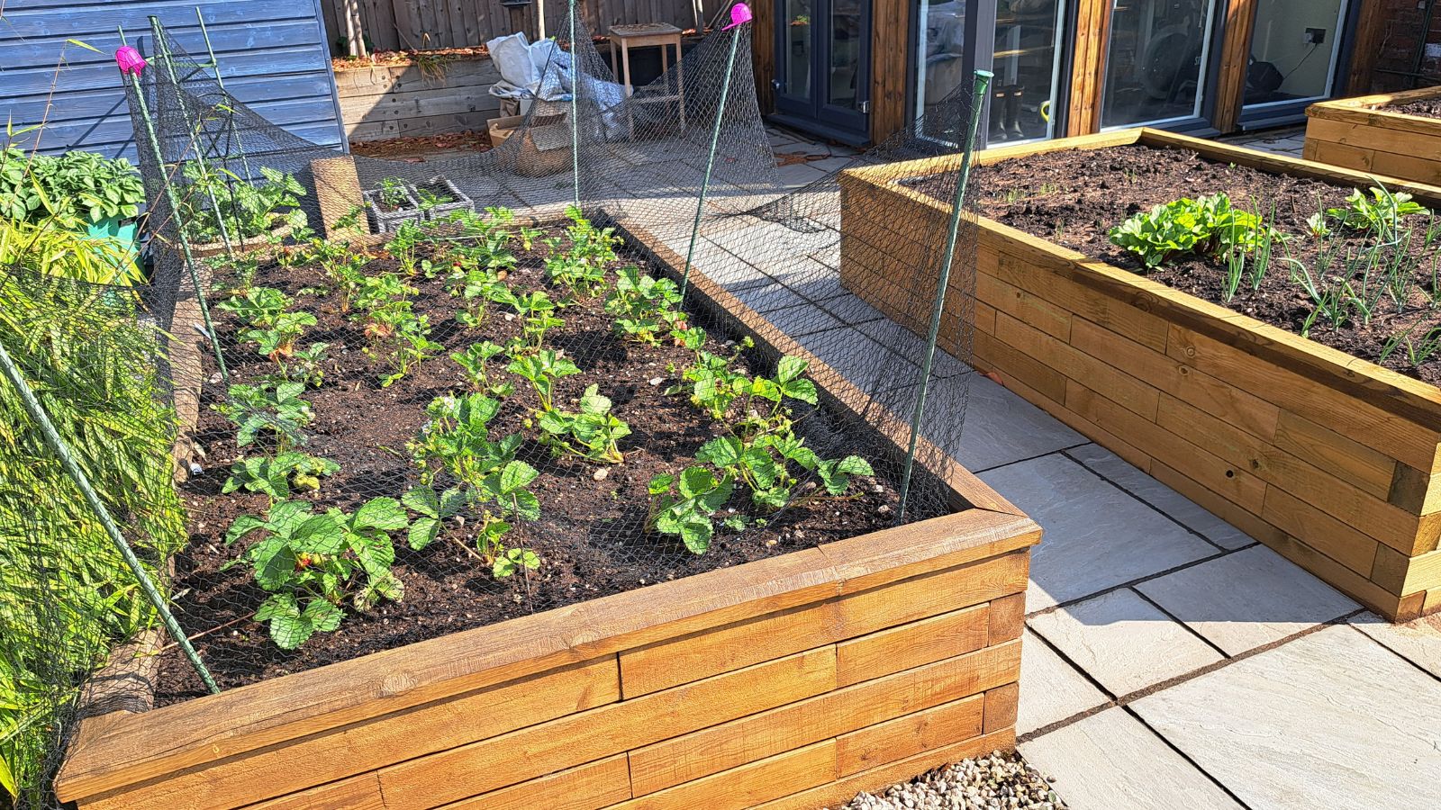 De uiteindelijke verhoogde plantenbakken van Ian zien er geweldig uit naast de bestaande WoodBlocX-plantenbak in de tuin. De oorspronkelijke plantenbak is gebeitst zodat deze past bij de kleur van de nieuwe verhoogde bakken. Het drietal plantenbakken vormt een prachtig middelpunt in de tuin en biedt voldoende ruimte om een groot aantal groenten te kweken. Ian heeft gewasbeschermers aan de verhoogde bakken toegevoegd om zijn gewassen tegen allerlei soorten ongedierte in de tuin te beschermen. Onze verhoogde bakken kunnen ook worden gebruikt voor bloemen, struiken en kruiden – de keuze is aan jou!