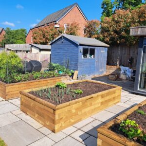 De uiteindelijke, lange L-vormige plantenbak past perfect in de beschikbare ruimte, waardoor een anders onderbenut deel van de tuin tot leven komt. Door de hoogte en lengte van de verhoogde bak heeft Jeroen volop ruimte om zijn eigen groenten te verbouwen. Hij liet weten dat zijn eerste oogst binnen is en een succes was! Kijk voor inspiratie voor je eigen moestuin naar onze pagina Tuinen van klanten voor enkele briljante ideeën.