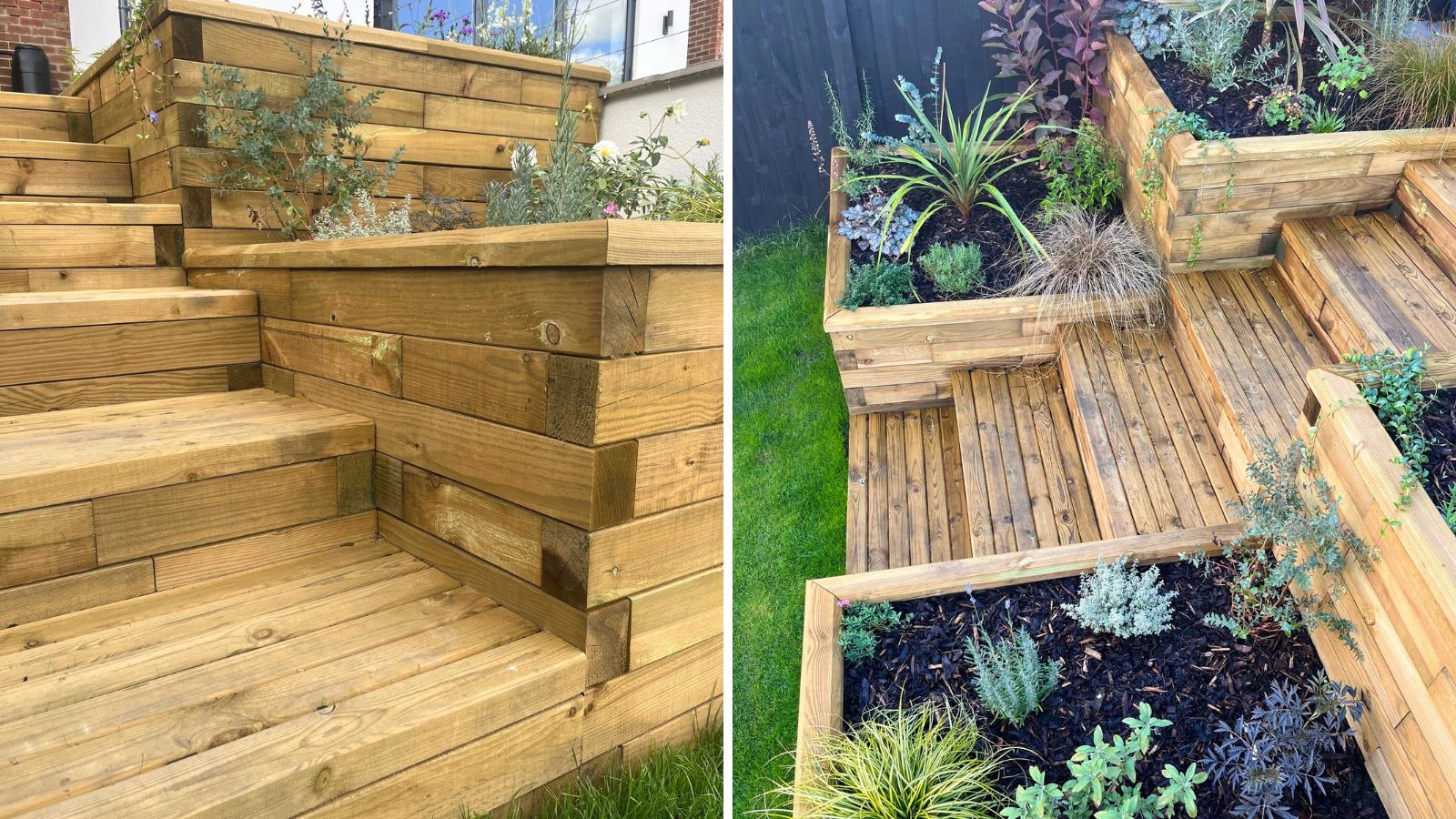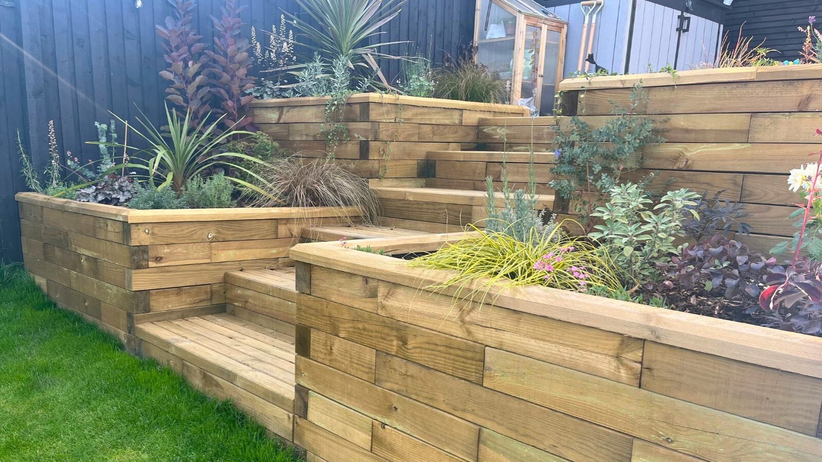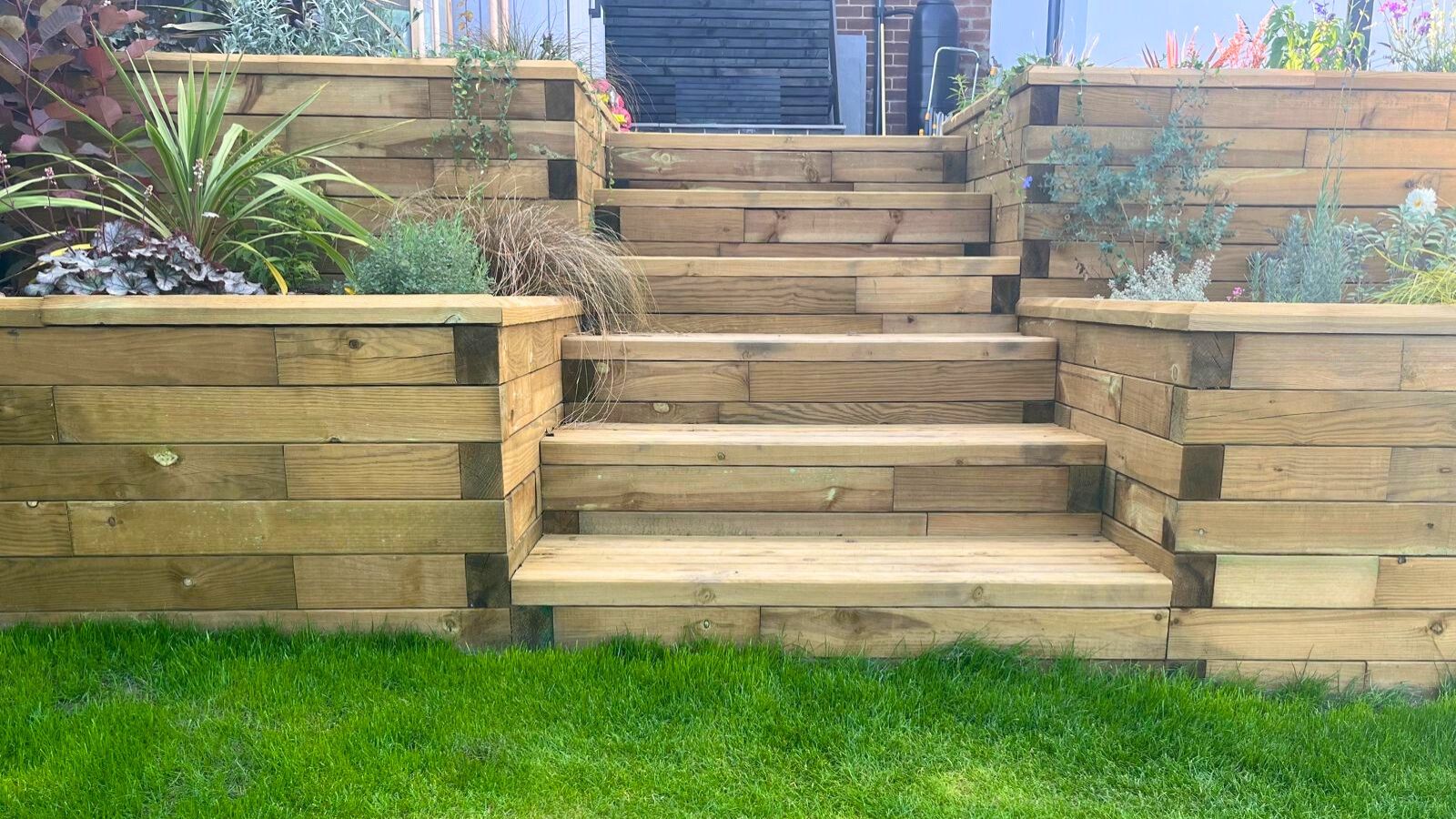 Luke had een structuur op maat nodig om de ruimte tussen zijn terras en gazon te verbinden als onderdeel van zijn lopende tuinrenovatie. In plaats van gewoon een aantal standaard traptreden te bouwen, was er een enorme kans om plantenbakken te integreren en zo een kleurrijk en aantrekkelijk pad tussen de twee ruimtes te maken. Het was belangrijk dat het ontwerp zo naadloos mogelijk in de ruimte zou passen, zonder tussenruimtes aan elke kant.