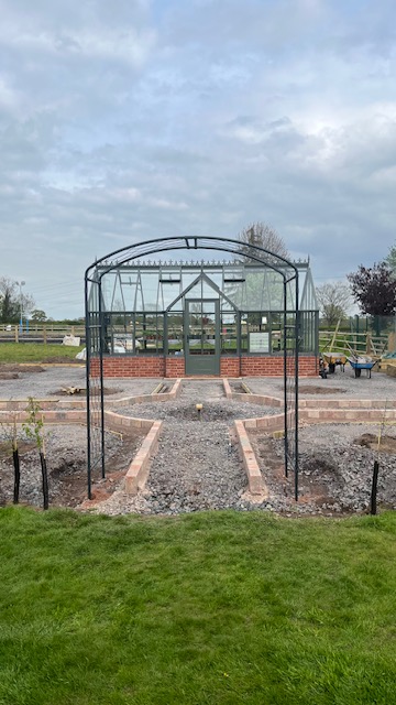 Steve maakte zelf het ontwerp van de moestuin door de afmetingen en de indeling uit te werken. De grote kas moest het middelpunt worden met een centraal pad dat door het midden van de tuin zou lopen.