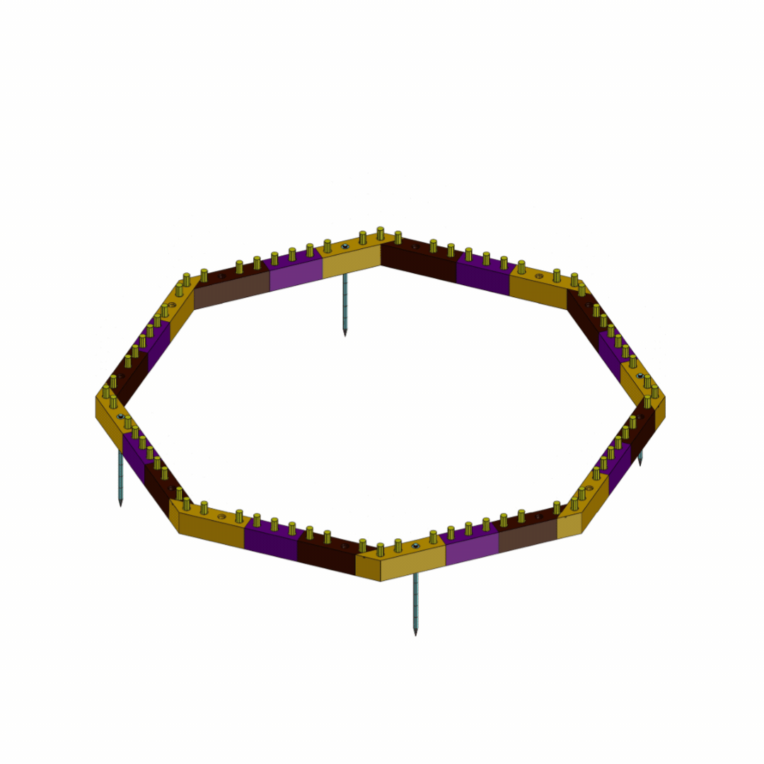 Hij koos standaardvormen en hoefde daardoor geen gebruik te maken van onze gratis ontwerpservice. In plaats daarvan gebruikte hij onze rekentool voor verhoogde bakken in combinatie met onze kant-en-klare kits om de juiste maten te selecteren. Hij was van plan een indeling te maken met 2 achthoekige en 14 rechthoekige moestuinbakken.