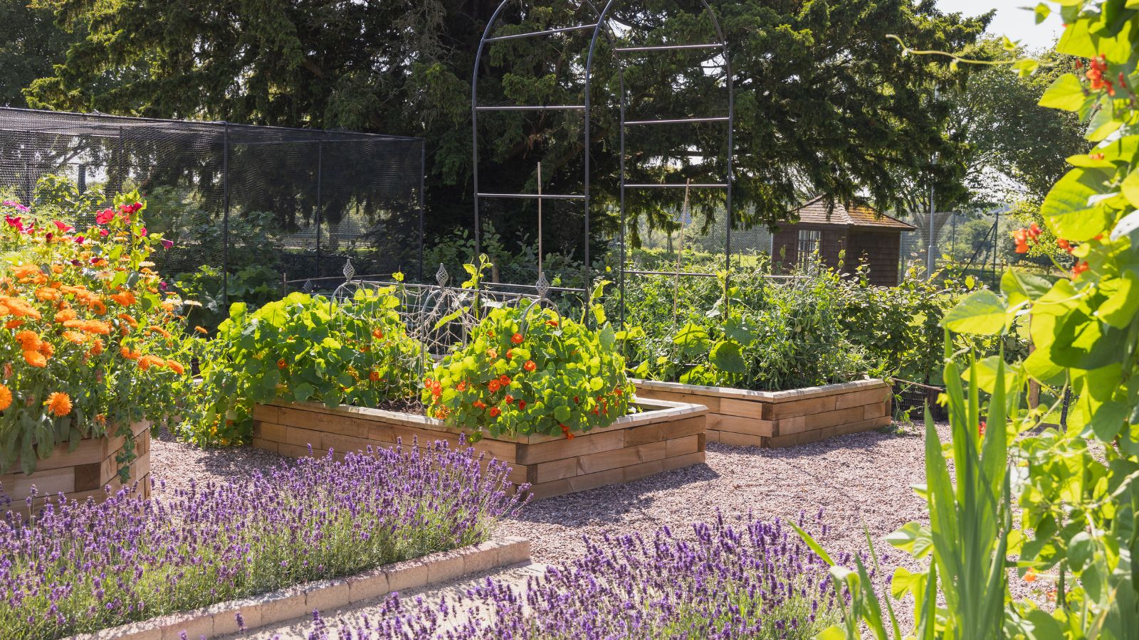 Dankzij de overvloed aan ruimte op dit landgoed was er meer dan genoeg plaats om een productieve moestuin aan te leggen. Voorheen was dit een grasveld dat de hele dag in de volle zon lag, waardoor het ideaal was om allerlei soorten planten, groenten en fruit te kweken.