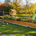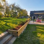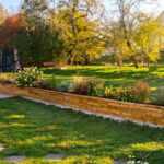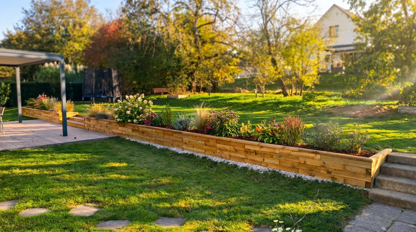 Een prachtig voorbeeld van hoe een eenvoudige keerwand een tuin tot leven kan brengen, structuur kan creëren en extra beplantingsmogelijkheden kan bieden.