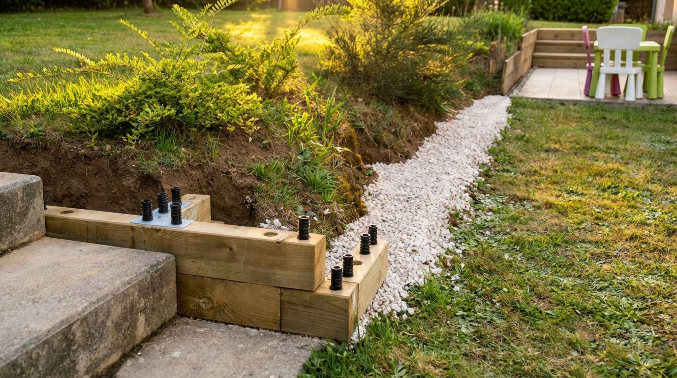 Ontdek ons assortiment WoodBlocX-kits voor keerwanden, ontworpen om niveauverschillen op te vangen en tevens een strakke, gestructureerde afwerking. Pas de afmetingen aan zodat ze perfect bij jouw tuin passen. Keerwanden met traptreden zijn een ideale oplossing voor hellende tuinen, hoogteverschillen en om duidelijke overgangen te maken tussen terrassen, gazons en beplantingsgebieden.