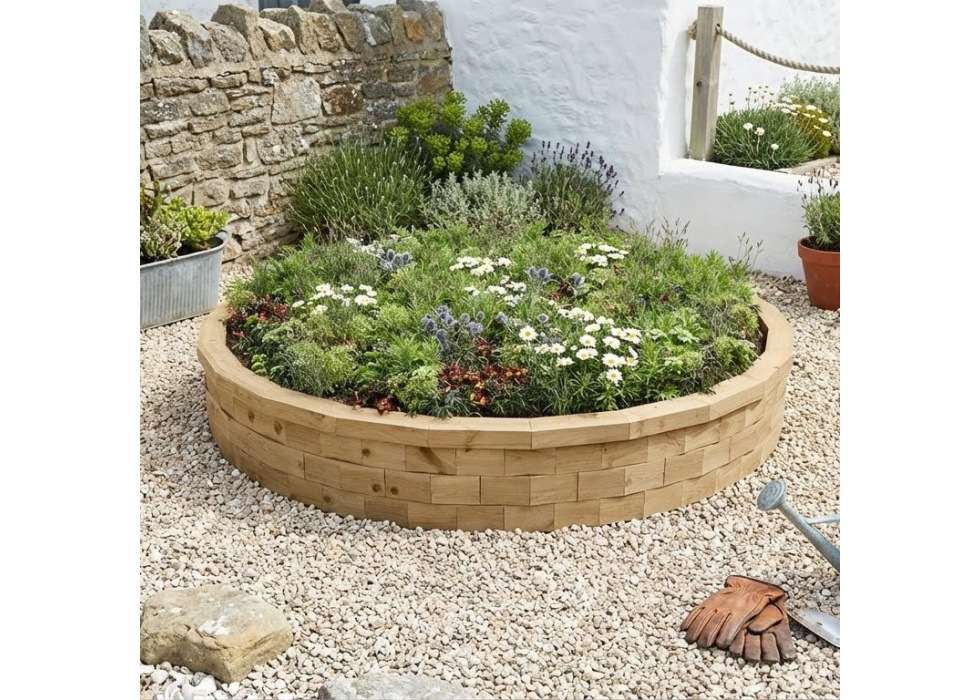 Deze grote ronde verhoogde moestuinbak is een ideale set om een indrukwekkend houten designstuk voor de moderne tuin te creëren. Het toevoegen van gebogen houten plantenbakken kan wonderen doen in rechtlijnige tuinen met zachtere lijnen of een ander soort gestructureerde ruimte. Waarom combineert u het niet eens met een paar gebogen plantenbakken om een werkelijk unieke en prachtige moestuin te creëren?