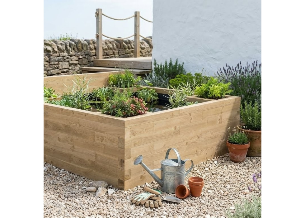 Grote verhoogde vijver met hoekplantenbakken 1.875 x 1.875 x 0.65m