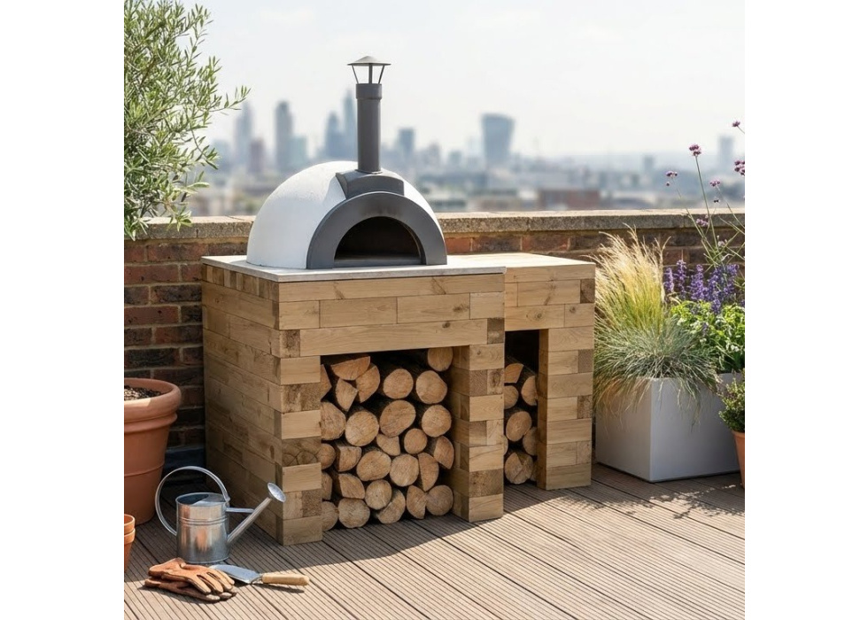 Breid je buitenkeukenopstelling verder uit met ons tuinstation voor pizzaovens. Deze stevige tafel met aan de zijkant een werkblad voor alle bereidingen en opslagruimte voor houtblokken eronder geeft je de benodigde ruimte om je pizzaoven in stijl te gebruiken! Het is zo eenvoudig te bouwen, volg gewoon de laag-voor-laag instructies.