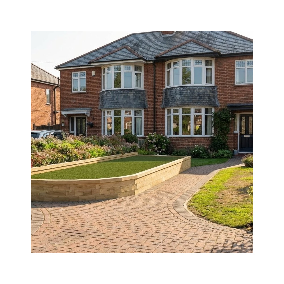 Deze op maat gemaakte keermuur met meerdere niveaus werd oorspronkelijk ontworpen om een bestaande bakstenen muur te vervangen tussen een oprijlaan en de straat. De oorspronkelijke geometrie werd behouden maar het simpele vervangen van bakstenen door hout bracht de nodige levendigheid met zich mee in wat voor de rest een betonnen jungle was in deze stedelijke voortuin. Niet helemaal wat je zocht? We bieden een gratis ontwerpservice op maat voor al onze kits, ongeacht hoe klein of groot het project is.