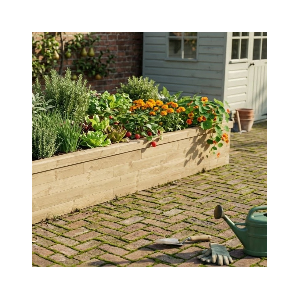 Deze verhoogde kruidenbak biedt veel ruimte voor je eigen kruidentuin. Grote verhoogde kruidenbakken bouwen is zoveel gemakkelijker met WoodBlocX dan met bijvoorbeeld spoorbielzen. WoodBlocX is veel minder zwaar, bevat geen schadelijke stoffen en biedt een oplossing die er natuurlijk mooi uitziet. WoodBlocX-constructie buigen ook niet zoals planken en spoorbielzen. Niet helemaal wat je zocht? We bieden een gratis ontwerpservice op maat voor al onze kits, ongeacht hoe klein of groot het project is. Je kan ook onze moestuinbakkencalculator gebruiken om verschillende groottes en prijzen te vergelijken.
