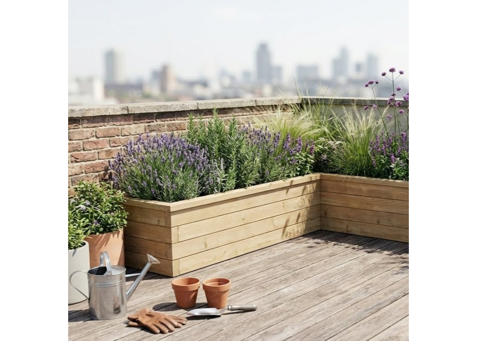 Deze extra grote L-vormige moestuinbak biedt veel plaats voor geurige lavendel, weelderige lelies en zoveel andere prachtige bloemen, planten en kruiden.