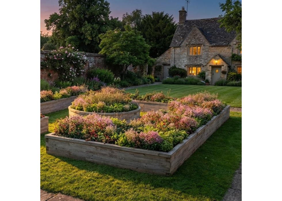 Tuinbak Kader met ronde Moestuinbak 6.675m x 6.4m x 0.45m