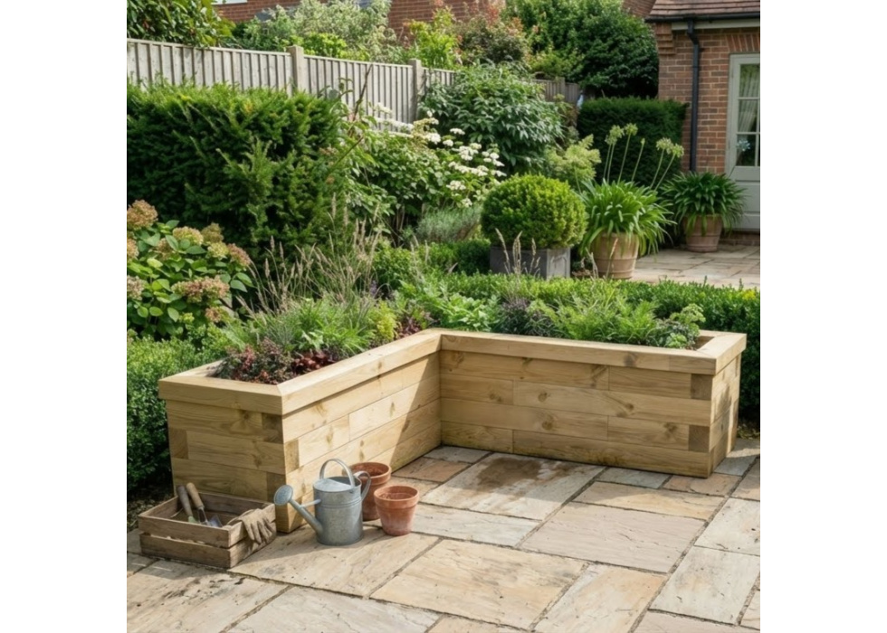 Gebruik deze L-vormige moestuinbak aan de zijkanten van een je patio of breng de achterkant van bestaande bloemen- of groentebedden omhoog. Dit ontwerp kan langs een hek of muur worden geplaatst, wat ook handig is voor klimplanten! Niet helemaal wat je zocht? We bieden een gratis ontwerpservice op maat voor al onze kits, ongeacht hoe klein of groot het project is. Of gebruik onze moestuinbakkencalculator om ontwerpen en prijzen te zien op basis van jouw specificaties.