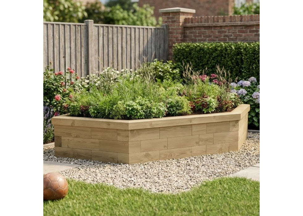 Deze zeshoekige moestuinbak bestaat uit speciaal geselecteerd dennenhout uit duurzaam beheerde bossen. Wij gebruiken enkele het meest robuuste hout dan niet uit het midden van de boom komt en behandelen het tijdens het productieproces twee keer onder hoge druk. Dit alles levert een levensduur van minimum 15 jaar op voor uw WoodBlocX product. Deze moestuinbak is perfect voor het kweken van planten of groenten in een van nature mooi uitziend ontwerp in lijn met de meest recente milieurichtlijnen van officiële bodemassociaties. Niet helemaal wat je zocht? We bieden een gratis ontwerpservice op maat voor al onze kits, ongeacht hoe klein of groot het project is
