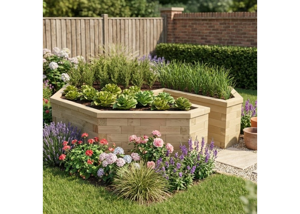 Let op: Onze aanbeveling om in al onze constructies een beschermfolie en drainagemedium op te nemen. Beschermfolie of compostkooien zijn niet inbegrepen. Alle opgegeven afmetingen zijn extern.