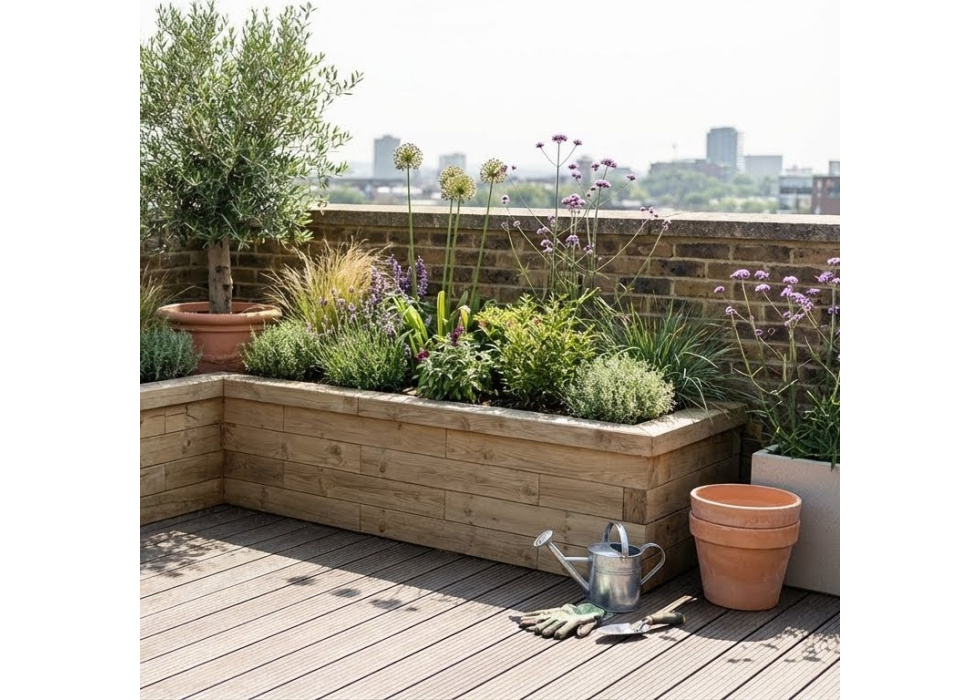 Deze smalle hoektuinbak is ideaal voor tuinen die niet de ruimte hebben voor een volledig verhoogd tuinbed. Deze moestuinbak, netjes weggestopt in een hoek, biedt royale hoeveelheden plantruimte zonder toegevingen te moeten doen aan het mooie uitzien ervan.
