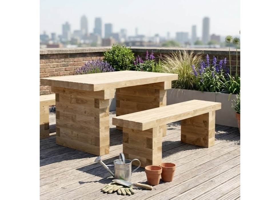 Deze tuinset is perfect voor elke patio of tuin die je wilt omtoveren tot een eethoek in de buitenlucht. Het biedt een robuuste en stevige uitstraling met behoud van de balans van een moderne en rustieke esthetiek.