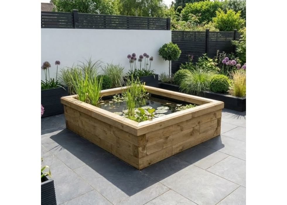 Breng uw tuin tot leven met onze verhoogde vijverbak bestseller! Deze houten vijverbak van middelmatige grootte is een van onze best verkopende vijverkits en past perfect in elke tuin, groot of klein. Deze vijverbak kan perfect door koi of andere vissen bewoond worden. Je kan ook aan de slag met waterplanten om een kleine vijver biotoop te starten.
