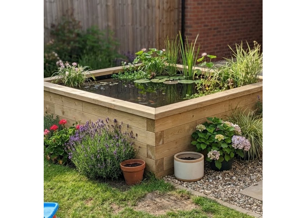 Deze houten vijverbak met vierkantige vorm is 55 cm hoog en vormt de ideale biotoop voor koi en andere zoetwatervissen, kikkers, salamanders, bootsmannetjes en een breed scala van waterplanten in jouw tuin.