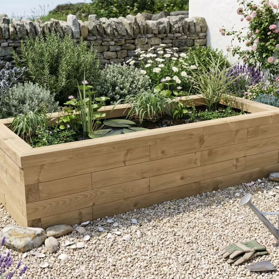 Met deze lange rechthoekige vijverbak van WoodBlocX geef je op een eenvoudige manier vorm aan je tuin. Het mooie, rechthoekige ontwerp van deze verhoogde houten vijverbak kan wonderen verrichten voor uw tuin! Bestel vandaag nog en creëer een fantastisch middelpunt voor uw favoriete buitenruimte.